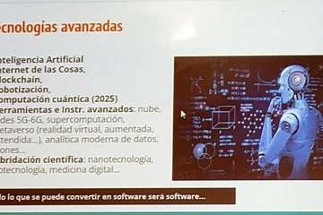 El profesor Andrés Pedreño Muñoz, expone en su conferencia Tecnologías avanzadas y Medio Ambiente, las aplicaciones de los avances en tecnología y sus aplicaciones en los diferentes campos de la industria, economía, producción, consumo, naturaleza, educación, Universidades, y conflictos que tendrán una resolución en clave tecnológica como la Inteligencia Artificial, Internet de las Cosas, Blockchain, Robotización, Computación Cuántica, Herramientas e instrumentos avanzados, hibridación científica, etc. Inteligencia Artificial y Cambio Climático: Capacidad de regenerar el medio. Transporte inteligente, logística y distribución.