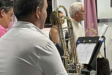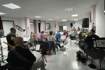El ensayo tuvo lugar en la sede de la agrupación que dirige José Martel en el parque urbano de San Juan con presencia del concejal Juan Martel, responsable de Cultura, el área que promueve este concierto en el que será un repaso a los grandes éxitos nacionales e internacionales de la música pop de finales del siglo XX.