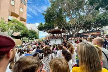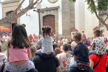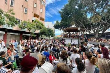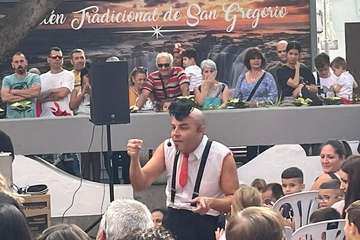Animación al máximo este sábado por la mañana en el entorno de la plaza de Los Llanos de Telde, donde el tradicional belén canario y la actuación del payaso Zapitto movilizó a cientos de personas.