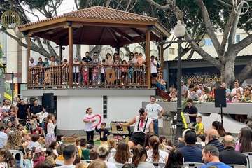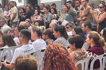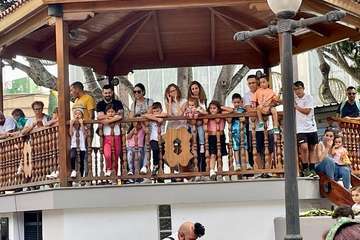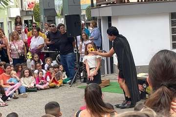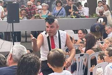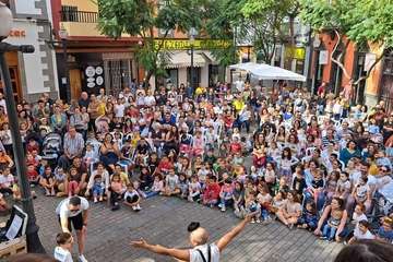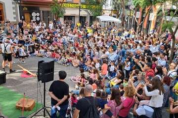Al mediodía, el espectáculo de Zapitto, un clown extrovertido y enérgico que involucra al público jugando con él mediante la improvisación, suscitó el interés de menores y adultos que apiñaron en el espacio peatonal situado entre la plaza y la fachada de La Fraternidad para disfrutar de las ocurrencias de este popular payaso en un acto organizada por la Concejalía de Festejos y la empresa pública Gestel en el marco de la programación navideña de este año.