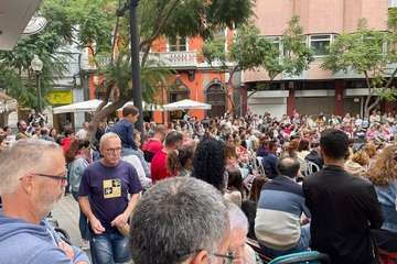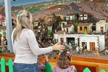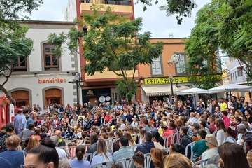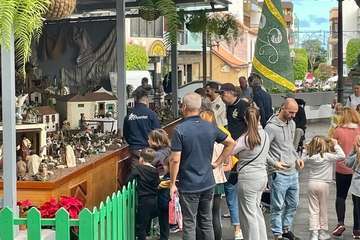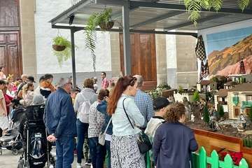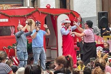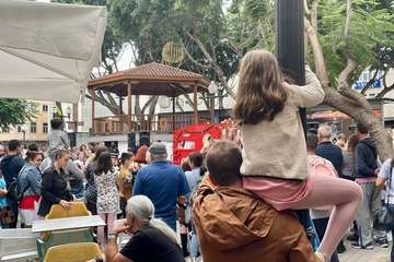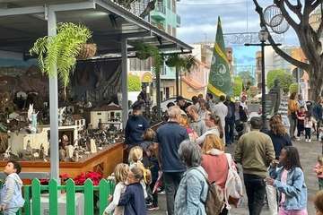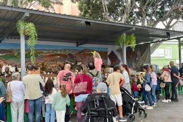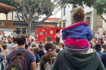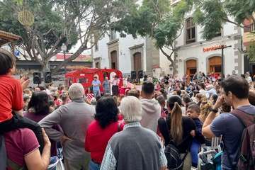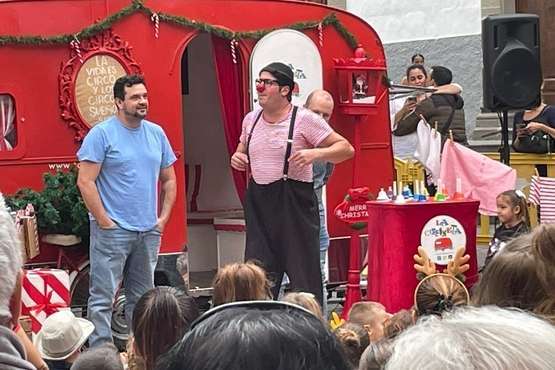 Decenas de familias de Telde con sus hijos pequeños disfrutaron este domingo al mediodía en Los Llanos del maravilloso mundo de los payasos con La Circoneta ¡Llega la Navidad!, un público que también se acercó a ver el Belén canario montado en la plaza de la zona comercial abierta de la ciudad.