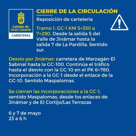 El Servicio de Carreteras del Cabildo de Gran Canaria anuncia el cierre nocturno de la GC-1, a su paso por Telde, para la reposición de [...] Leer más...