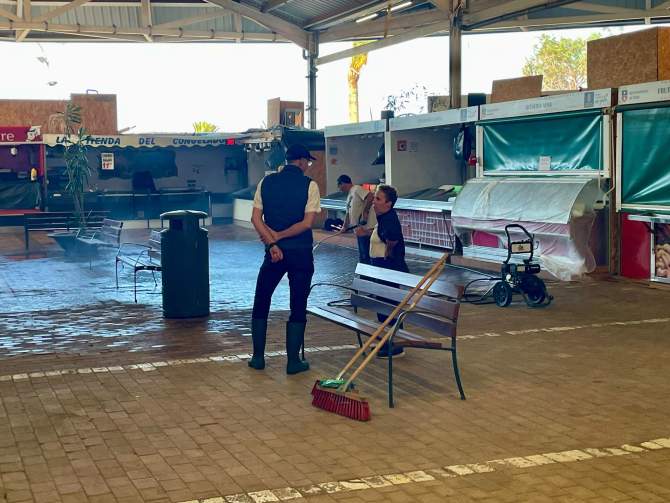 Debido a la alerta por lluvias y tormentas, varias dotaciones de agentes, además del alcalde, se personaron en el lugar para desalojar la zona