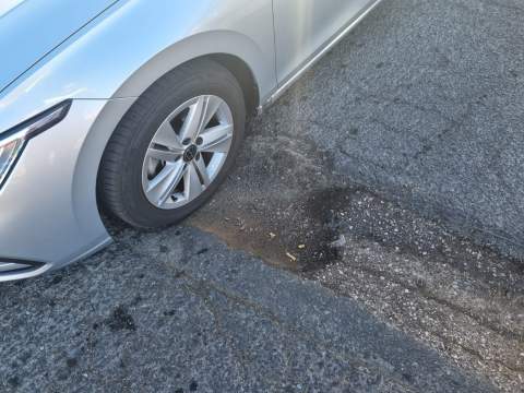 Los conductores denuncian un enorme socavón en la salida de la gasolinera del barrio