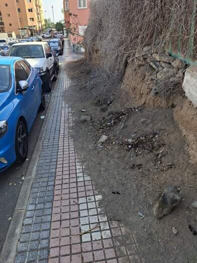 Los vecinos del sector de Picachos piden la limpieza porque no es accesible para coches de bebés y sillas de ruedas debido a un derrumbe de tierra
