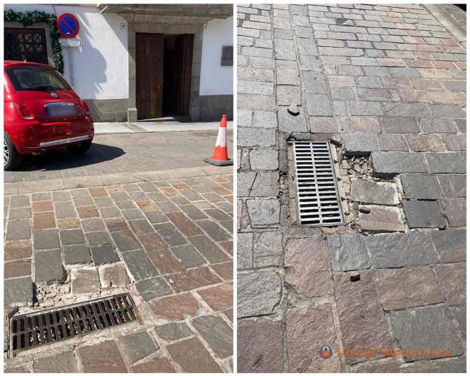 Un socavón frente a oficinas municipales preocupa por el riesgo para los peatones y vehículos