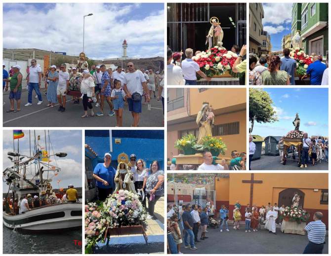 Taliarte acogió la celebración más multitudinaria, con misa marinera, procesión marítima y jornada festiva frente al mar