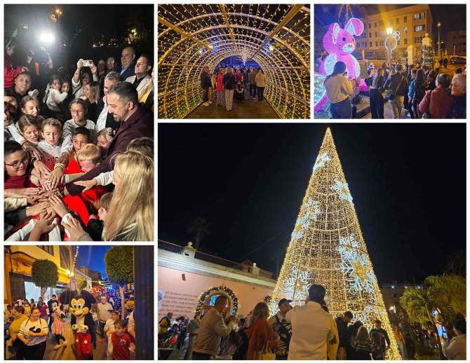 Una marea humana asiste al encendido navideño en el Parque de Arnao