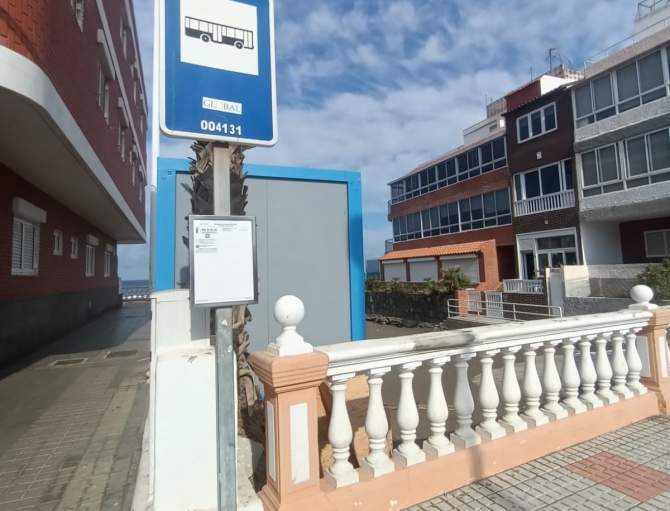 La actual ubicación deja a los pasajeros esperando en plena calzada y en el paso de entrada a la playa