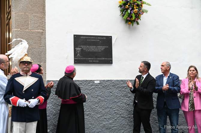 La fachada de la iglesia de San Gregorio Taumaturgo ya luce una placa conmemorativa que inmortaliza la histórica visita de la Virgen del Pino a [...] Leer más...