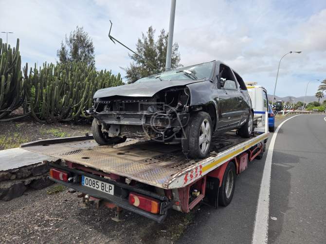 Un vehículo accidentado, con importantes daños visibles, permanece abandonado en el acceso a la Avenida del Cabildo desde la GC-1, en la [...] Leer más...