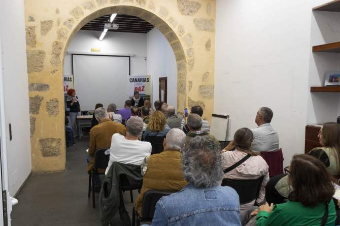 La asamblea reunió a medio centenar de personas y organizaciones en defensa de una Canarias desmilitarizada