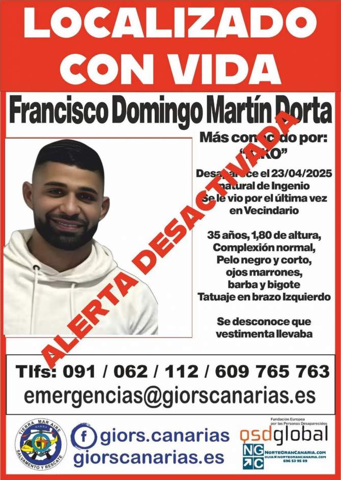 La alerta por la desaparición de Francisco Domingo Martín Dorta, activada el pasado 23 de abril de 2025 tras ser visto por última vez en [...] Leer más...