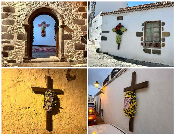 El enramado de la cruz lo realizó Carmelo Hernández, de Peluquería Future Telde