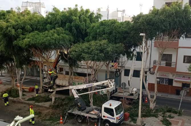 La acción consistió en la limpieza del pulgón blanco que afecta a los viejos laureles de Indias