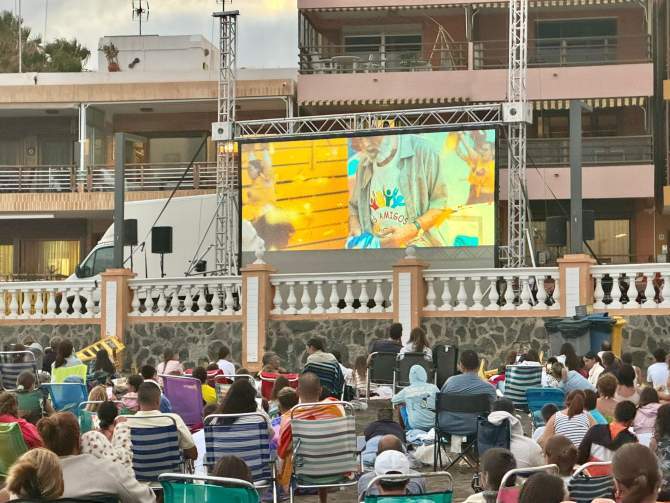 El pase de la comedia dramática de 2018 dirigida por Javier Fesser, atrajo esta noche a cientos de personas que llenaron casi toda la parte norte de la playa teldense,
