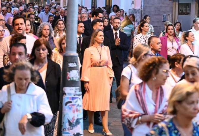 La patrona de los marineros recibe vítores, cánticos y lanzamientos de pétalos en su recorrido por el sector comercial de la ciudad
