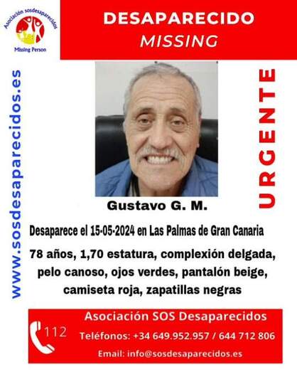 La asociación SOS Desaparecidos ha activado este martes una alerta por la desaparición de Gustavo G.M., un hombre de 78 años que fue visto por [...] Leer más...
