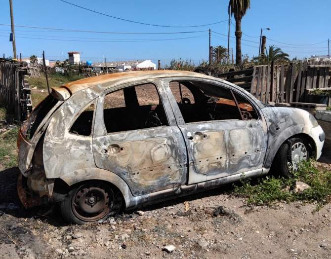 Vecinos del lugar denuncian un vehículo abandonado y quemado que lleva meses en la bajada del Barranco El Negro.