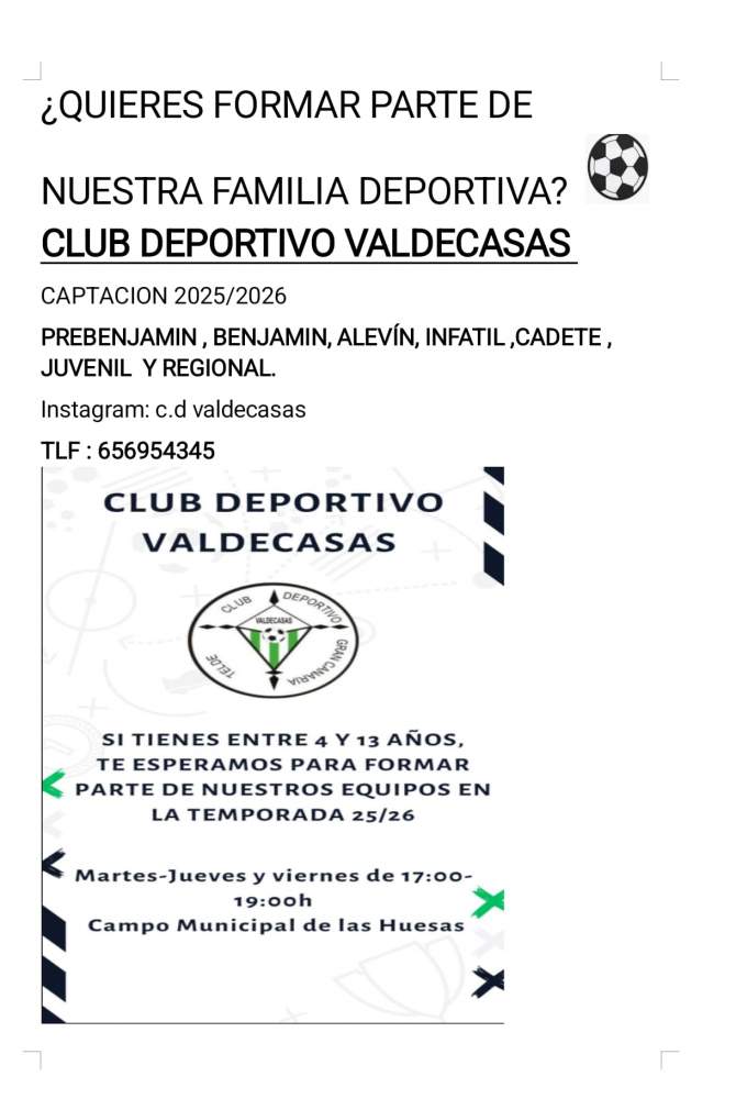 El Club Deportivo Valdecasas ha puesto en marcha una campaña de captación de cara a la próxima temporada 2025 / 2026.