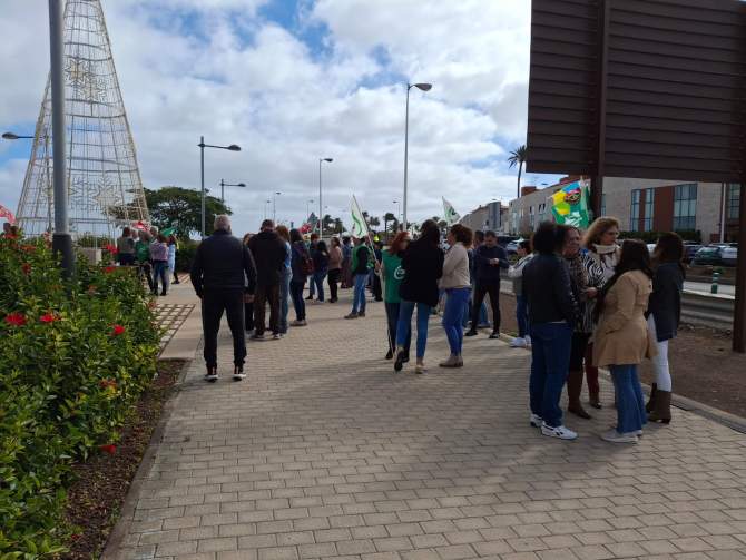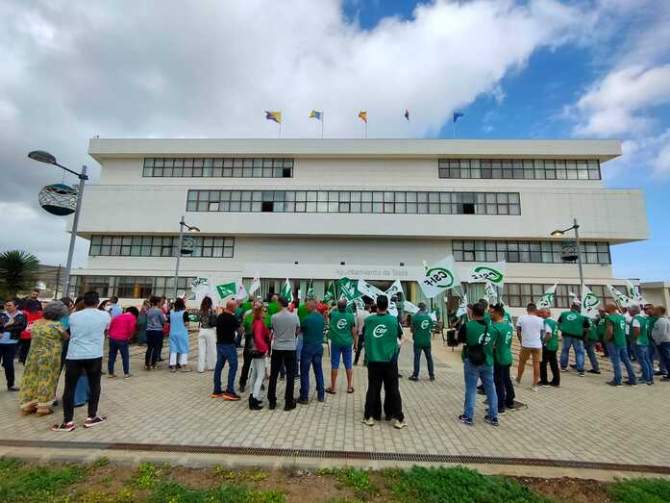 CSIF, UGT e Intersindical Canaria protestan frente al Ayuntamiento por la bajada salarial y la paralización de la "paguilla"