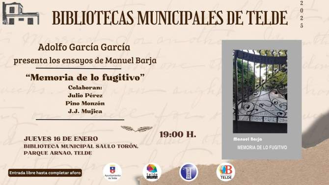 El poeta Adolfo García García presenta en Telde, el próximo 16 de enero en la Biblioteca Saulo Torón del Parque de Arnao (19.00 horas), los [...] Leer más...