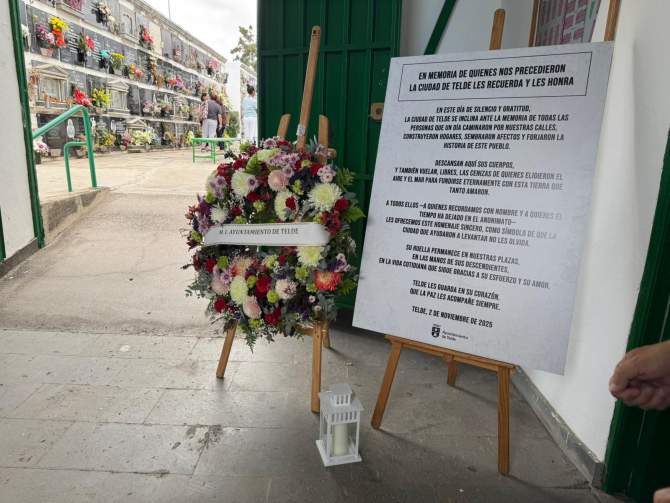 La ciudad instala una corona, una carta y velas en la entrada de los dos cementerios municipales