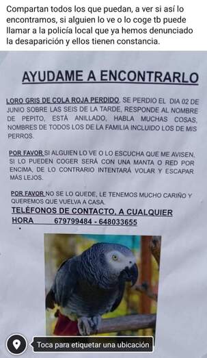 Un vecino de La Solana busca a un loro de color gris y cola roja, anillado y que responde al nombre de Pepito, que se escapó el domingo 2 de [...] Leer más...