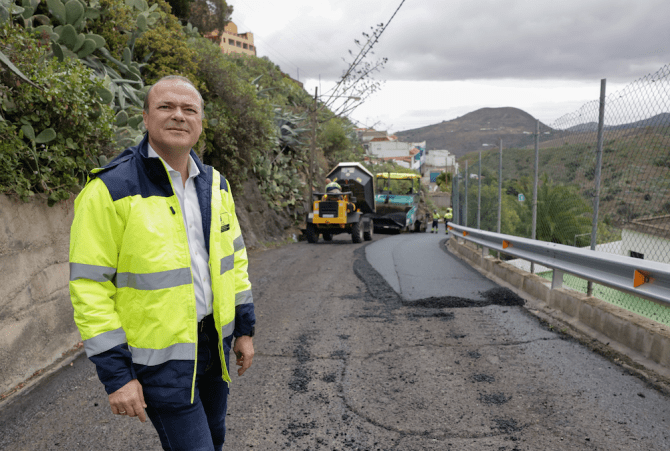El vicepresidente Augusto Hidalgo supervisa los trabajos que comenzaron el pasado lunes y en los que la Consejería de Obras Públicas invierte cerca de 400.000 euros
