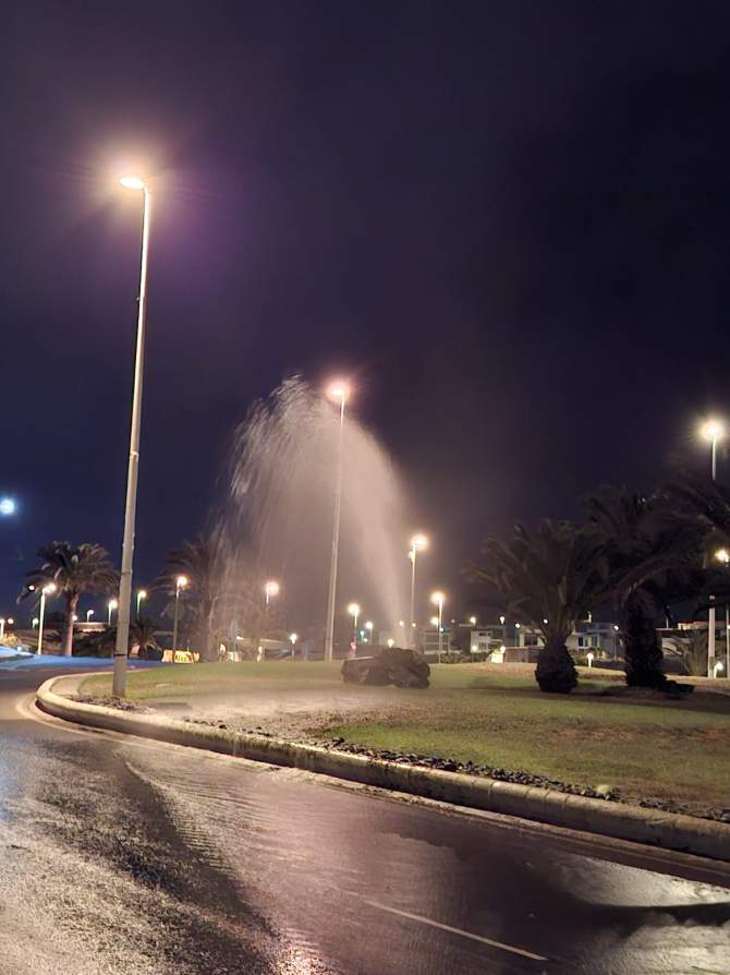 El barrio de Melenara se ha despertado este martes con una fuga de agua en el sistema de riego de la rotonda de entrada al barrio.
