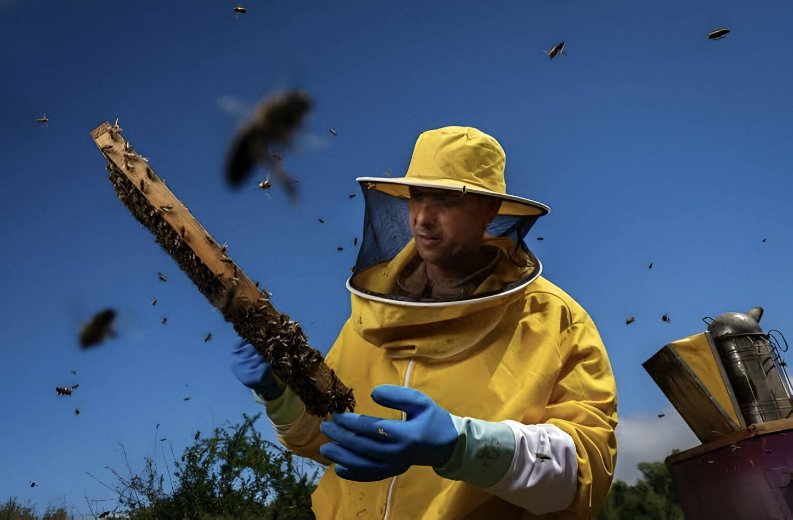 El apicultor local es responsable de la marca Colmenar La Violeta