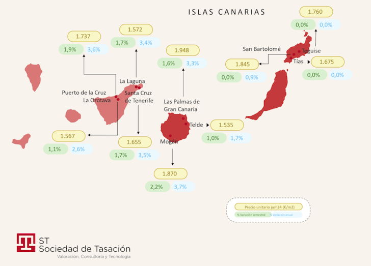 El precio medio en Canarias alcanza los 1.845 €/m2