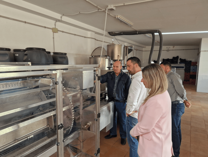 La concejal de Sector Primario, María Calderín, pone en valor la labor de su propietario Agustín Cabrera de León y de los trabajadores en la empresa local que hace posible la producción del caldo