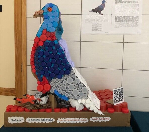 El alumnado de 1º ESO confeccionó el ave con residuos de los contenedores amarillo y azul
