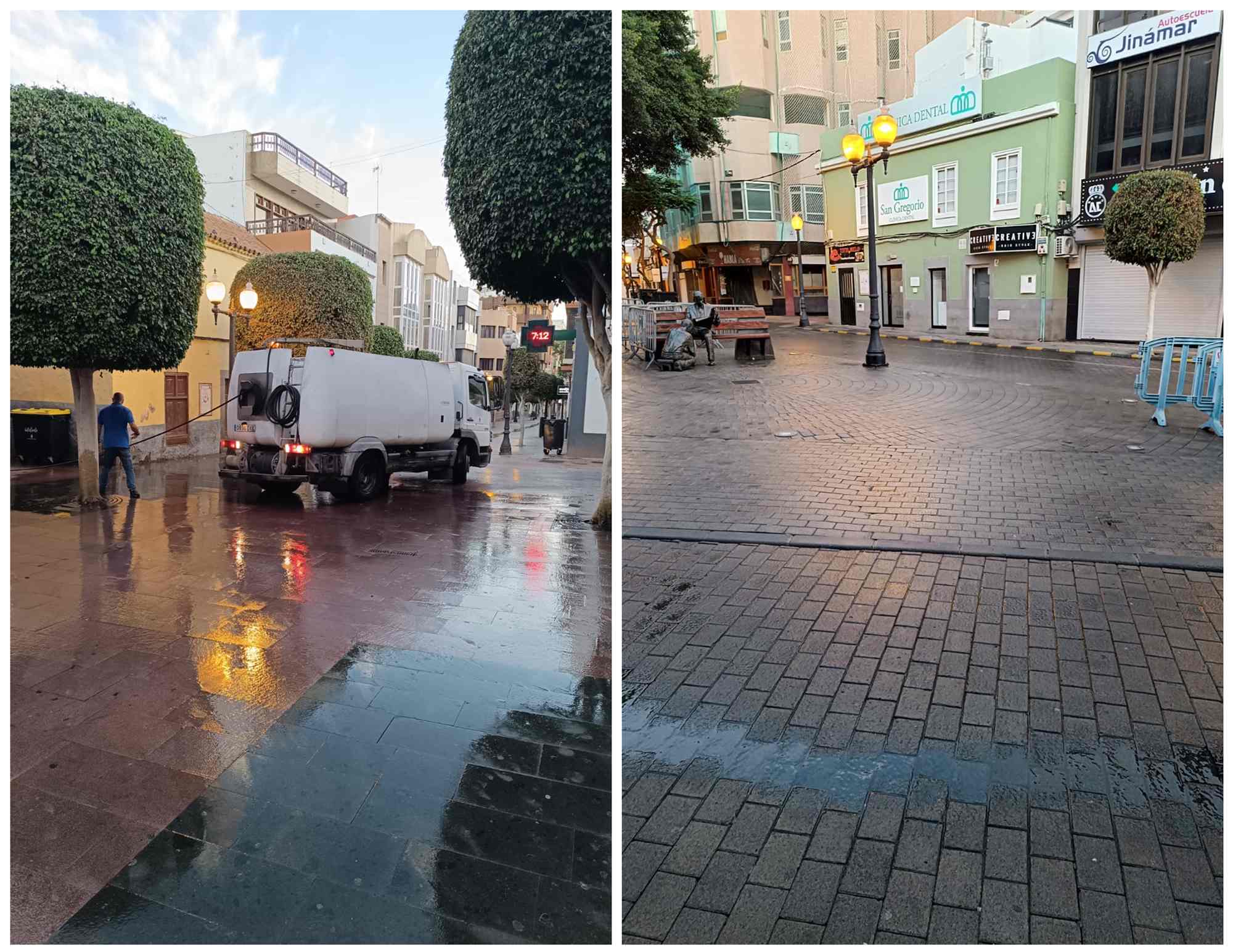 Ocho operarios y tres vehículos realizaron el aseso del entorno de la plaza en un operativo de Limpieza Viaria