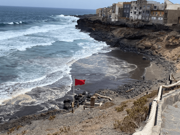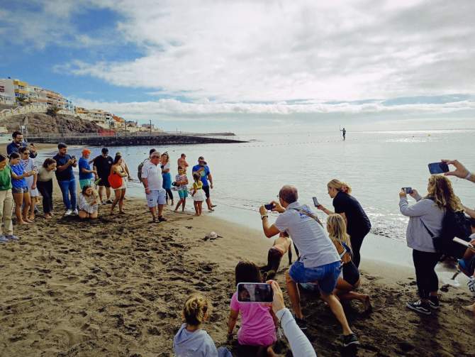 Este fenómeno es común en este espacio de la costa teldense, y en muchas ocasiones son los usuarios quienes ayudan a los ejemplares atrapados a volver al océano