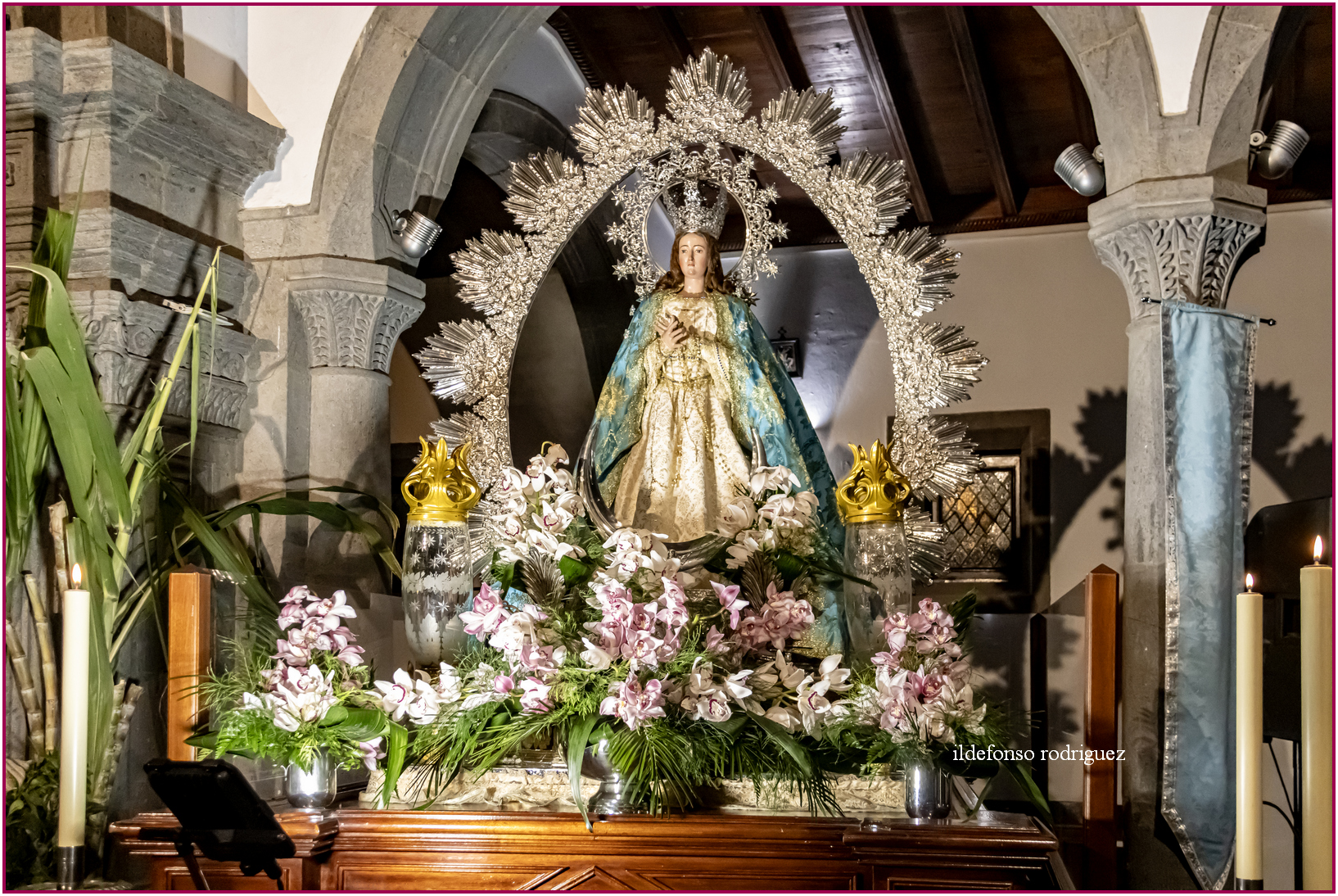Embellecido con anturios y lilium blancos por el equipo de Segundo Amador, recorrerá la calle principal tras la misa presidida por el obispo Mazuelos
