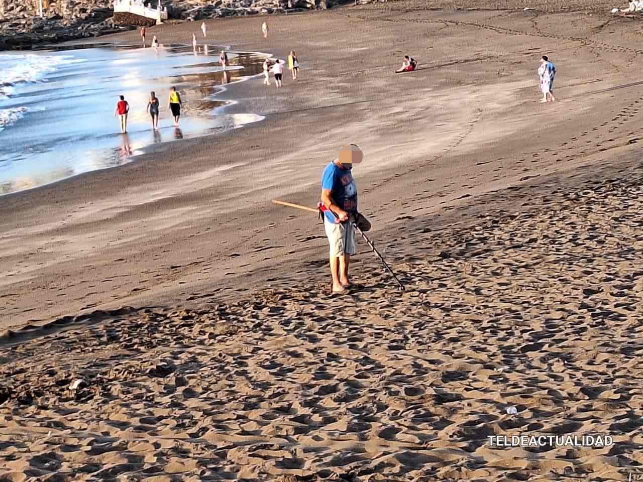 Es habitual ver a una persona con un detector de metales a primera hora de la mañana en esta cala teldense