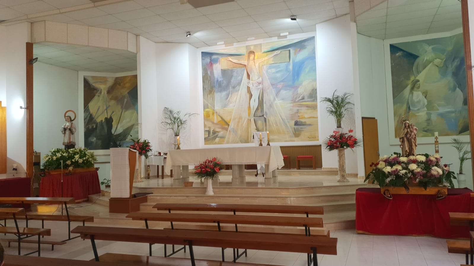 Las misas se mantienen en el salón parroquial por las obras
