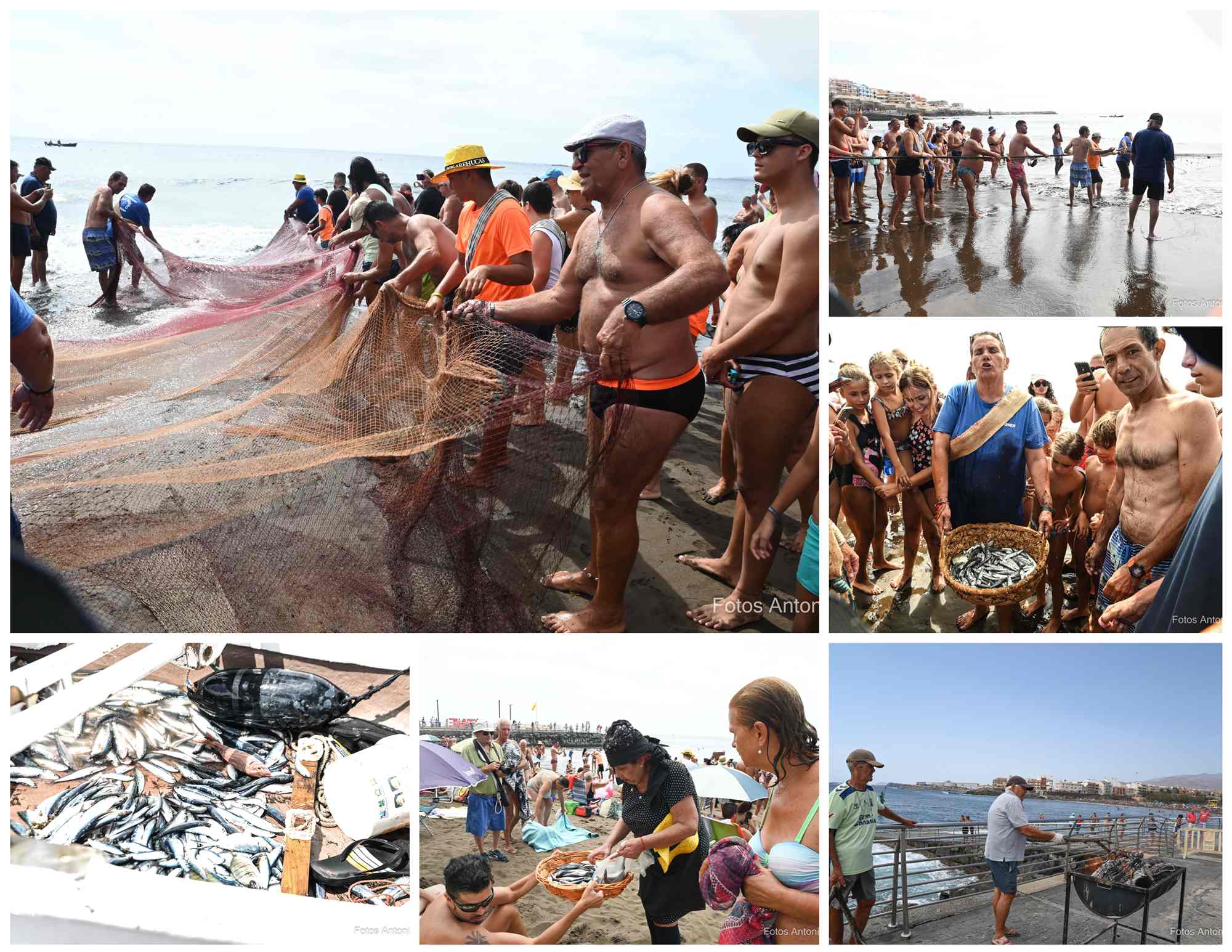 La popular playa teldense revive el viejo arte de pesca con una captura simbólica de 7 kilos