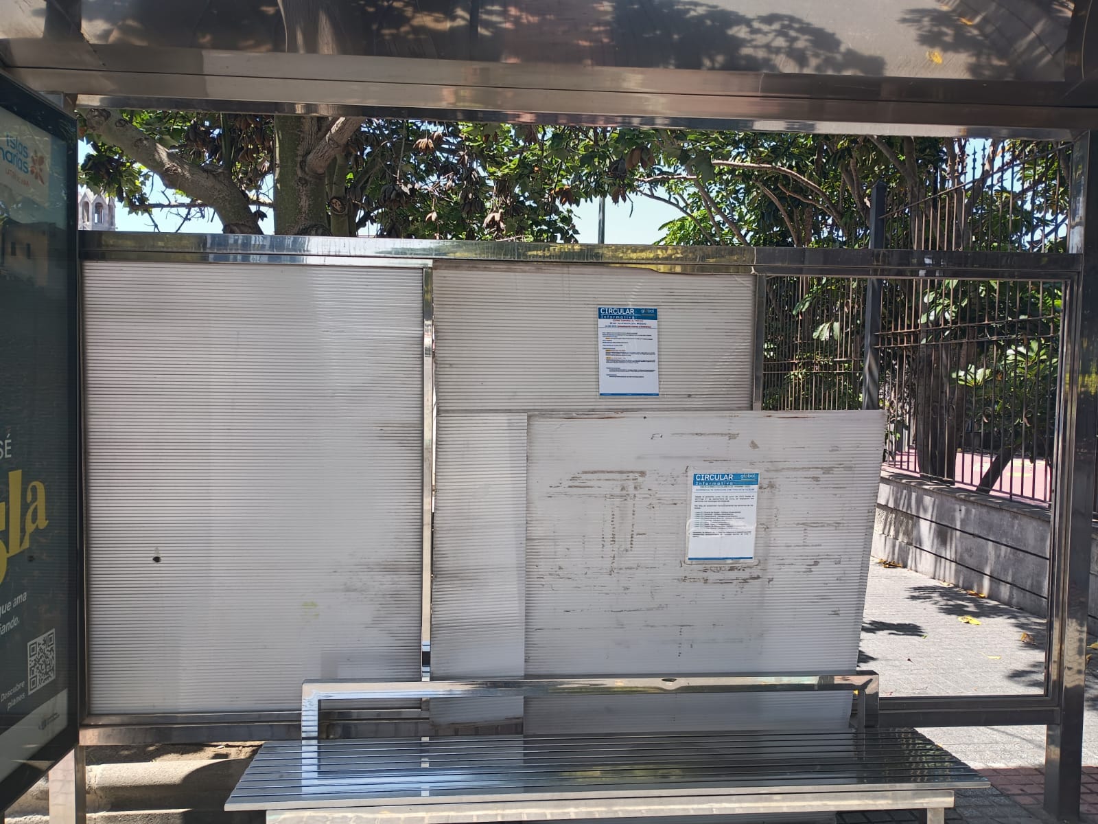 La estructura situada en la parada de guagua de la calle de Profesor Lucas Arencibia presenta paneles rotos y desprendidos