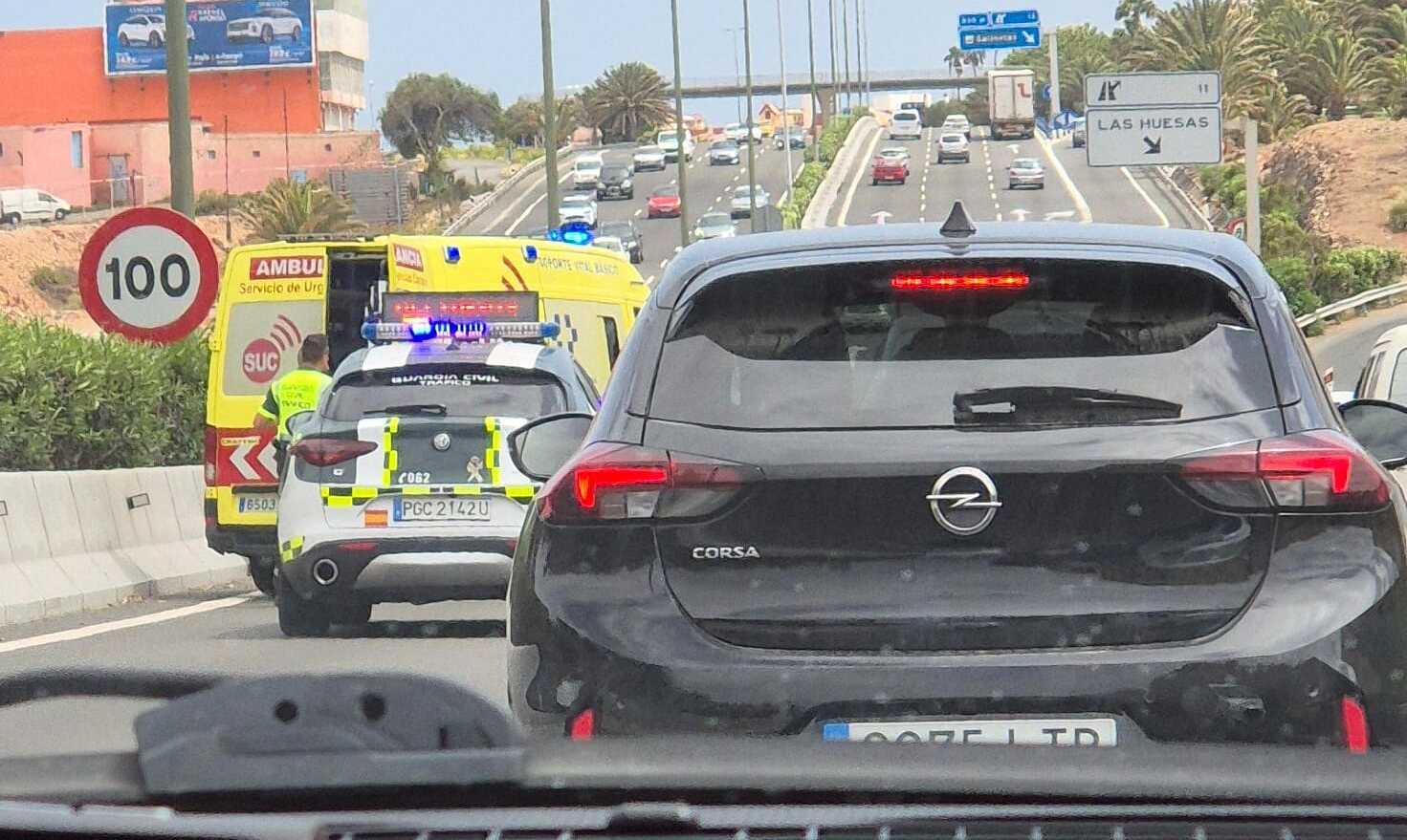 En el lugar del suceso, efectivos de la Guardia Civil de Tráfico y del servicio de Carreteras del Cabildo